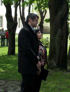 Kladenie vencov k pamätníku na nádvorí |