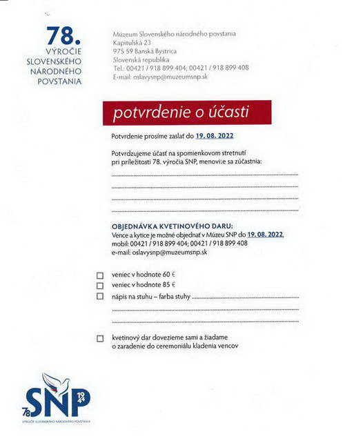 Vážený pán minister, členovia nášho združenia ma požiadali, aby som vám odovzdal tento odkaz. Naše združenie je už druhý rok likvidované dotáciou poskytovanou MV SR v likvidačnej výške 4000 eur. Pričom SZPB dostal 250 000 eur, protekčná KPVS 80 000 eur a PV ZPKO 40 000 eur. Ako potvrdzujeme v prílohe pozvánkou na oslavy SNP, z finančných dôvodov nemáme ani na veniec ani na cestovné pre členov, ktorí sa každý rok zúčastňovali na oslavách SNP. Z úcty k padlým v boji proti fašizmu sa rozhodli zúčastniť a všetky náklady si hradiť zo svojho. Obete sovietskych koncentrákov, ktorým rodičia zahynuli v gulagoch sú traumatizované mladými byrokratmi z Ústavu pamäti národa, ktorí po prijatí diskriminačnej novely zákona podanej „talibáncami“ a odídencami z KDH o príplatku k dôchodku pre politických väzňov priznávajú tzv. preukaz veterána rehoľníčkam, ktoré boli 3 mesiace internované a tým čo zomreli v gulagoch žiadostí príbuzných zamietajú pod zámienkou nepreukázania 12 mesačného protikomunistického odboja. 19. augusta sme s v Poprade pripomenuli 54. výročie udalostí z 21. augusta 1968 pri stále jedinom pamätníku so štatistikou obetí, ktorému hrozí po 20 rokoch zničenie kvôli poškodenému múru na opravu, ktorého nám všetky oslovené ministerstvá vrátane prezidentky odmietli poskytnúť finančnú pomoc. Vyhlásenie SZBPV k 54 . výročiu je uverejnené na našej webovej stránke http://www.szcpv.org/22/vyhlasenie21.8.1968.html V mene občanov SR, ktorým hrozí energetická chudoba a bieda sme vo vyhlásení poukázali na to, že Slovensko dnes namiesto politikov, ktorí slúžia cudzím záujmom bez ohľadu na ekonomické dopady na občanov, potrebujú štátnikov s ľudskou tvárou ako Alexander Dubček. Videa a mediálne výstupy z pietnej spomienky sú uverejnené na našej stránke http://www.szcpv.org/22/21august.html Mnohí naši členovia sa vyjadrili, že už nikdy nebudú voliť strany súčasnej koalície a budú sa modliť, aby táto vláda čo najskôr skončila. Za členov Svetového združenia bývalých politických väzňov František Bednár Príloha: -- Odpoveď kancelárie predsedu vlády SRDobrý deň,