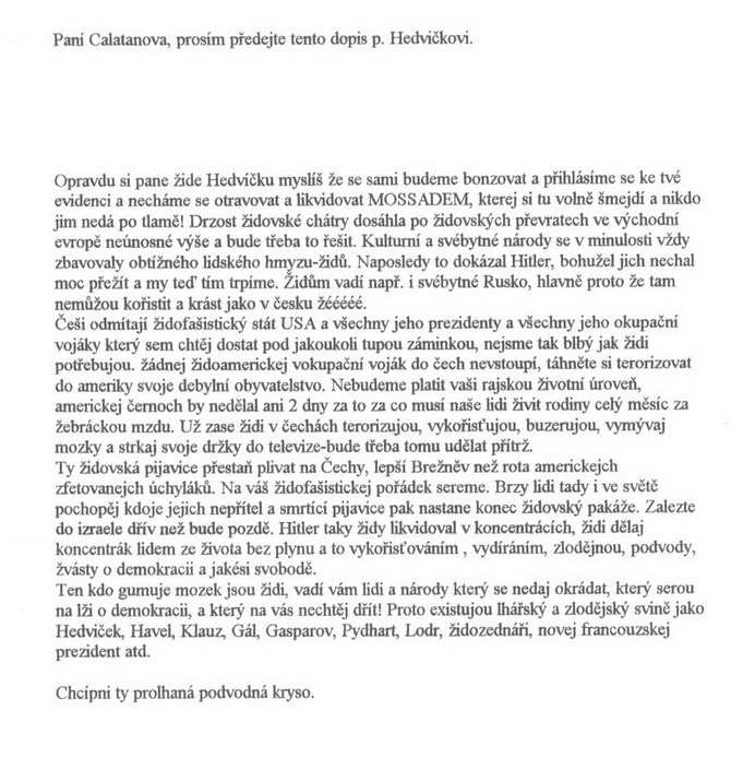 A teď jsem dostal email Jana Šinágla a tam se píše