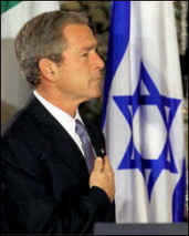 Na oslavách 60. výročia existencie Izraela to Bush povedal viac než priamočiaro, keď servilne a okázalo deklaroval nerozlučnú družbu a neotrasiteľné priateľstvo na večné veky s „vyvoleným národom“, tak ako voľakedy vo svojej servilnosti ponížene deklarovali nerozlučné priateľstvo na Večné veky a nikdy ináč satelity bývalého sovietskeho zväzu. Rozdiel bol len v tom, že vtedy sa klaňali trpaslíci veľkému ruskému medveďovi a dnes sa po kolenách plazí obor pred trpaslíkom. V čom je dôvod amerického lokajstva pred maličkým Izraelom začína dnes dochádzať už aj priemerne gramotným Američanom. V čom je pre USA, ktoré historicky viedli prvú vojnu proti otroctvu a rasizmu, výnimočný v podstate rasistický štát, ktorého Najvyšší súd považuje sobáš žida s nežidovkou za špinenie rasy?